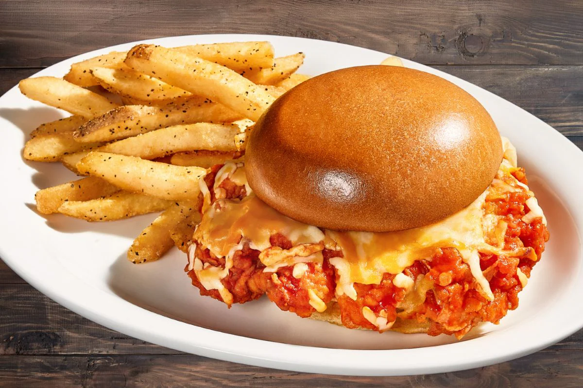 Crispy buttermilk-marinated chicken breast tossed in hot sauce, melted blended cheeses.