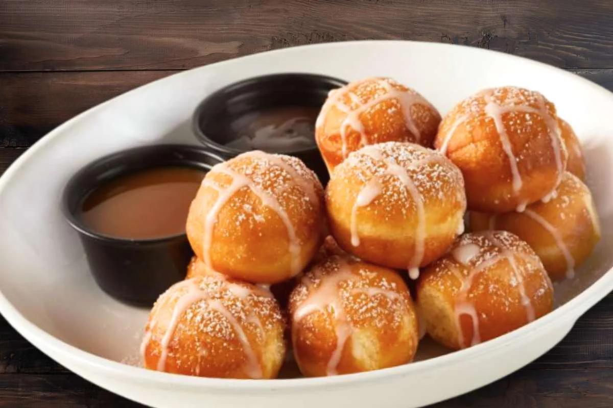 Glazed donut bites. Served with hot fudge and caramel for dipping.