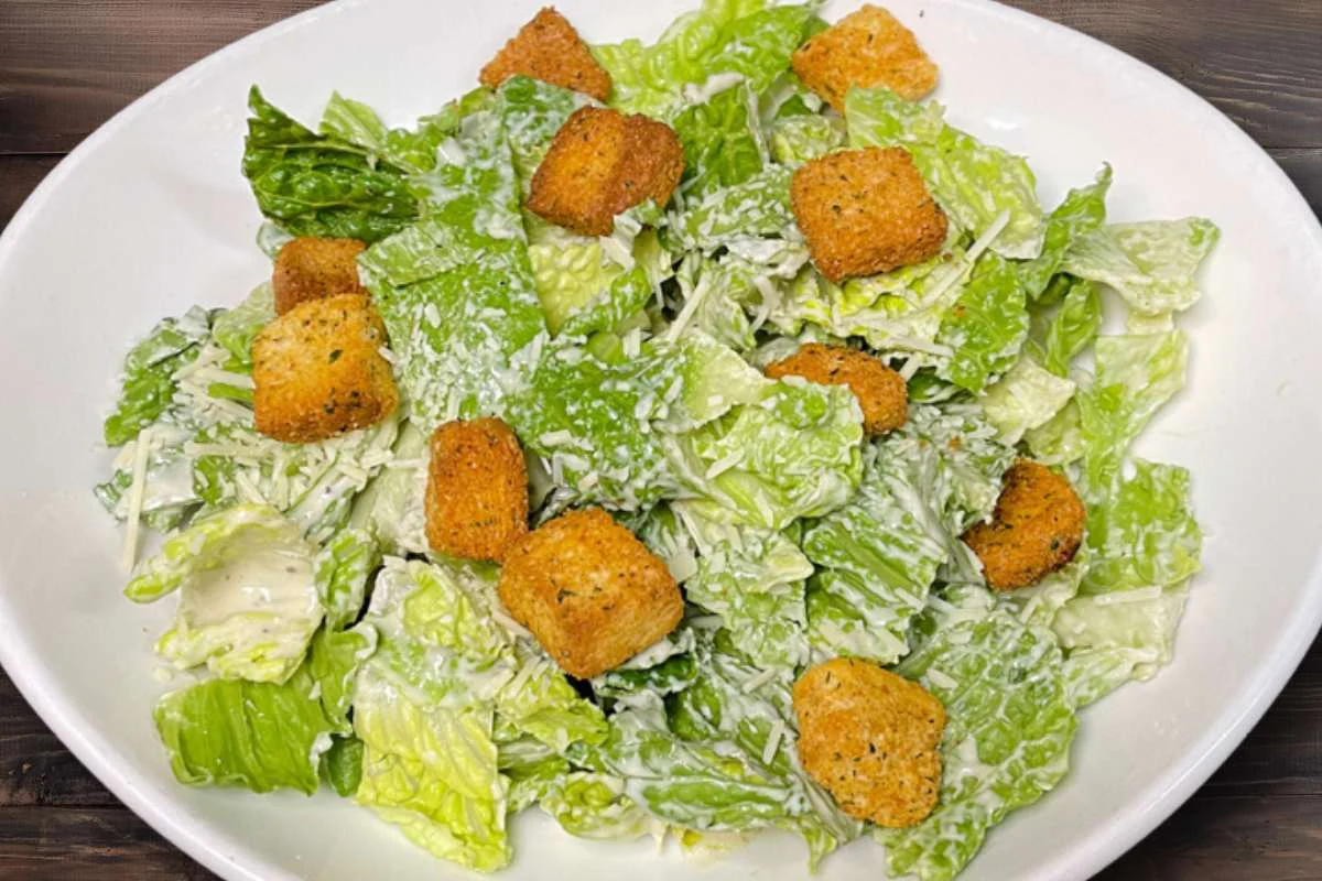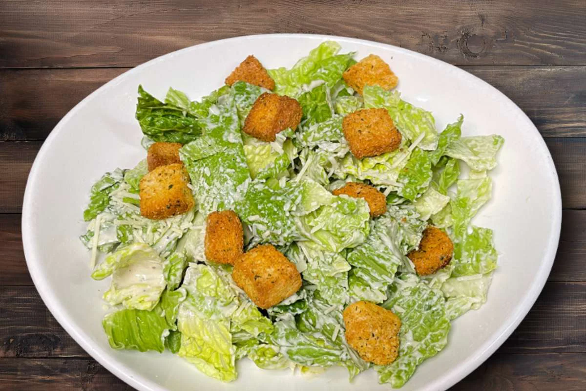 Shredded Parmesan, croutons, crisp romaine, Caesar dressing.