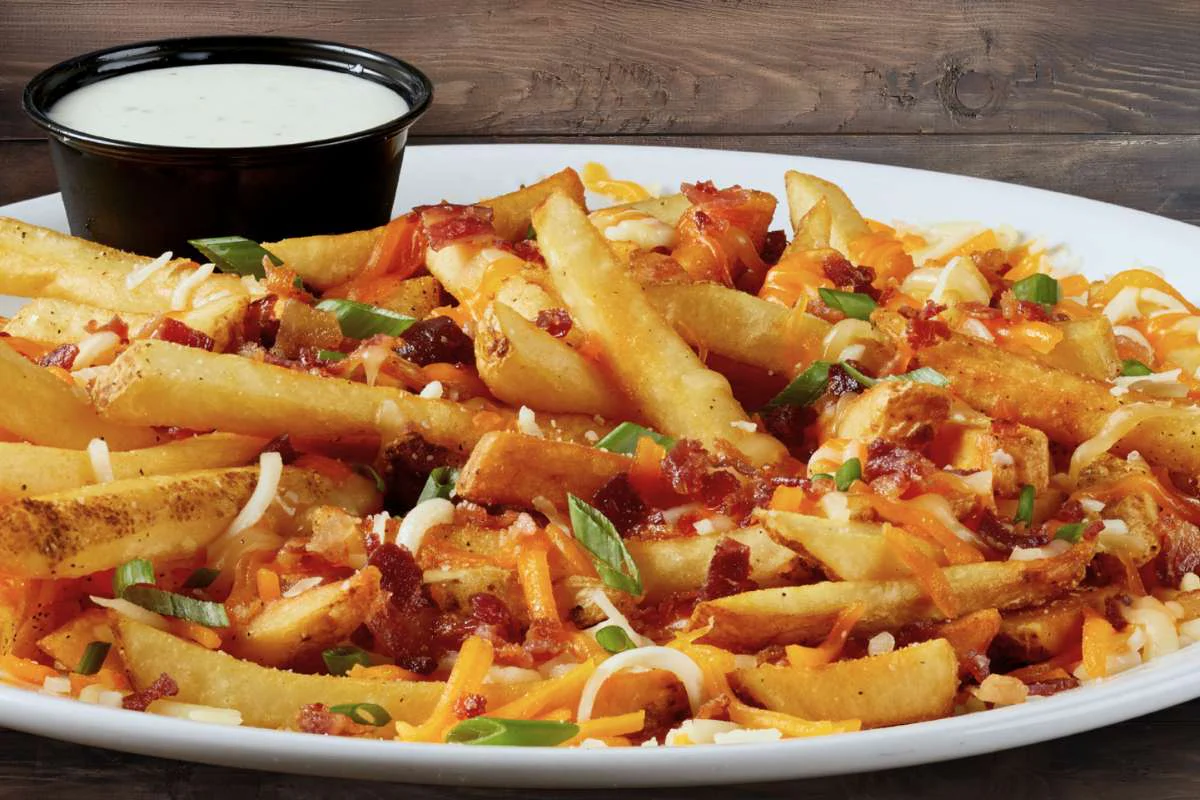 Zingers®, blended cheeses, applewood-smoked bacon, scallions, on a mountain of fries.
