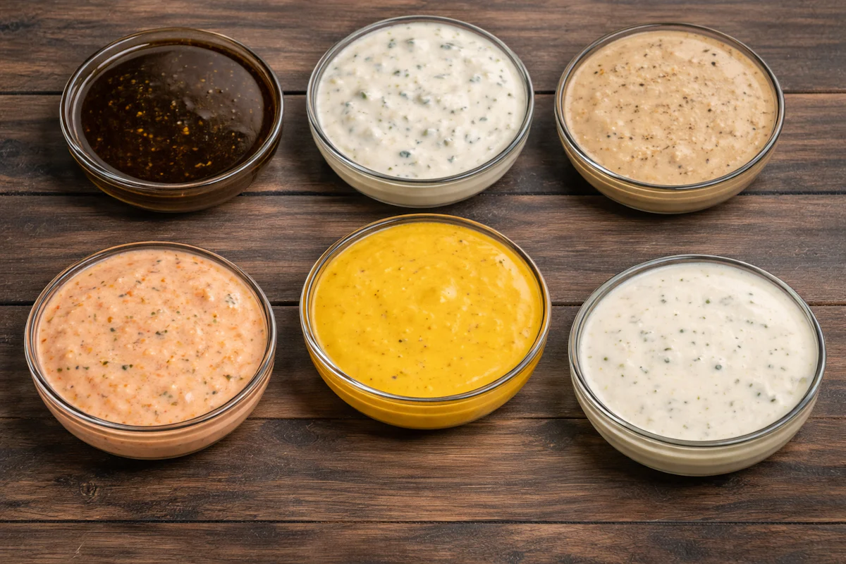 50 Fresh Chicken Wings, flats and drums, served with your choice of ranch or blue cheese dressing and two signature sauces on the side for dipping or tossing. (Feeds about 6–7 people)