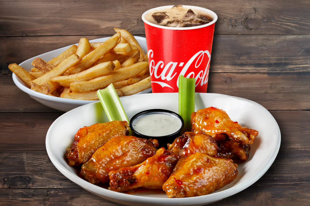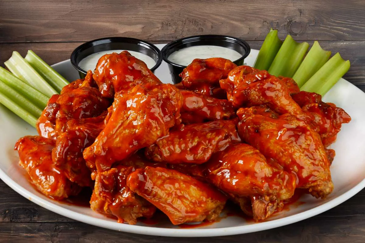 Your choice of 6, 12, or 24 Fresh Chicken Wings, flats and drums, served with celery, your choice of sauce, and ranch or blue cheese dressing.