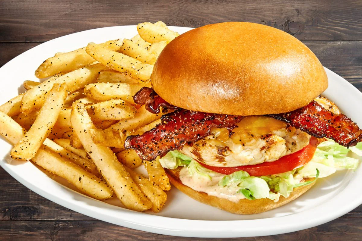 Peppered bacon, melted blended cheeses, shredded lettuce, beefsteak tomato, Cajun ranch.