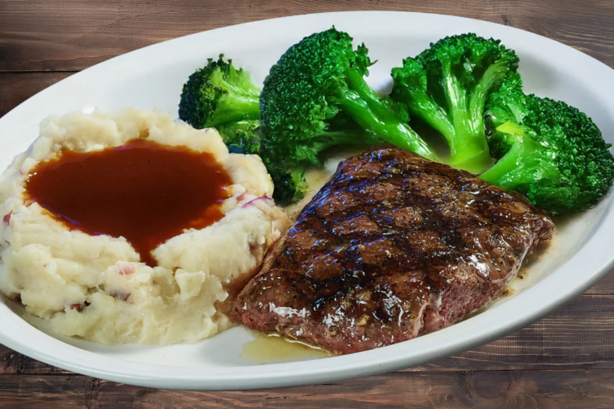 Tender and juicy 6oz Sirloin*. Served with two sides.