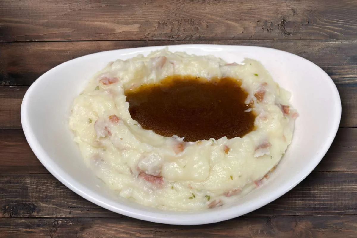 House-made signature blend of ground sirloin, pepper, onion, oregano & garlic. Served with vegetable medley, mashed potatoes & brown gravy.