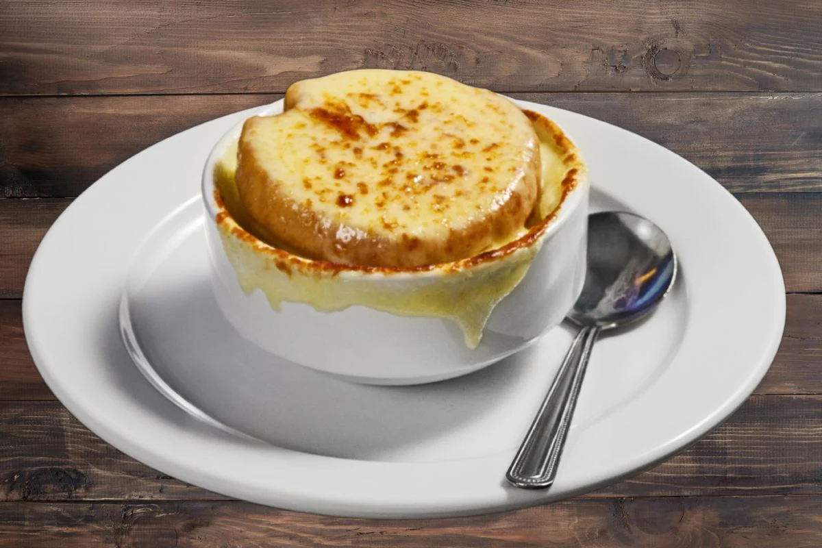 Caramelized onions, sherry, beef broth, melted Provolone cheese, toasted crouton.