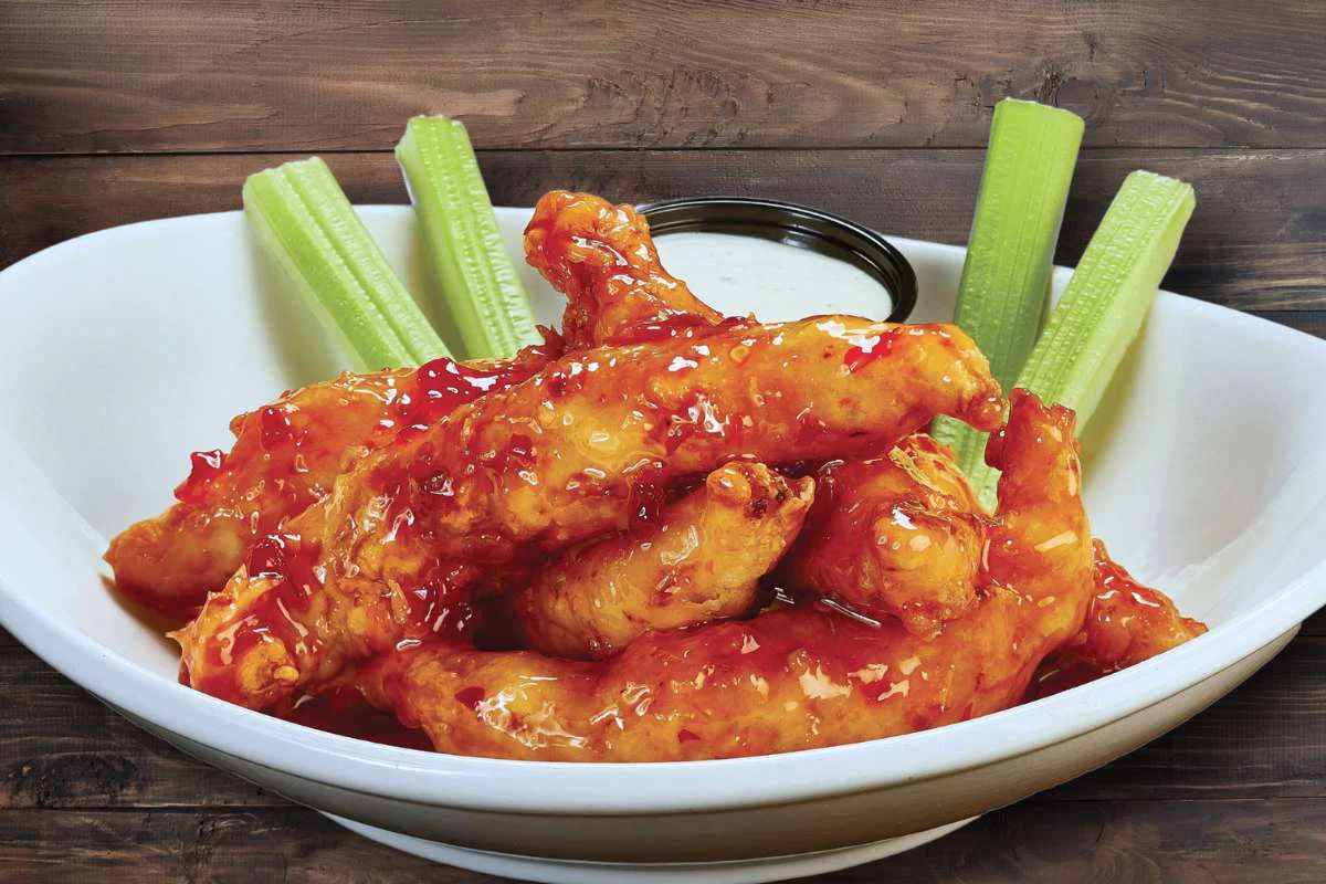 24 buttermilk-dipped, hand-breaded Zingers®, served with celery, your choice of sauce, and ranch or blue cheese dressing.