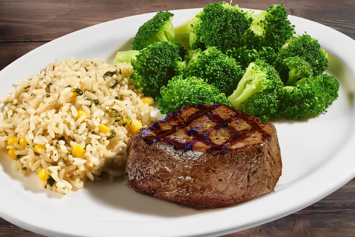 Tender and juicy 6oz Filet Mignon*. Served with two sides.
