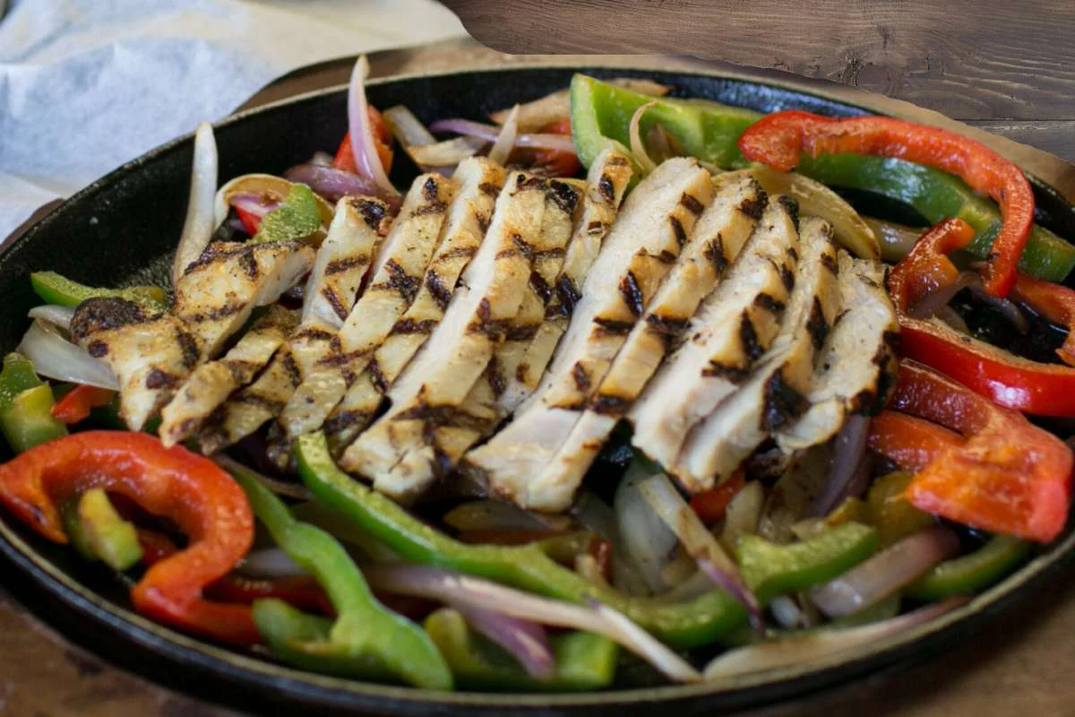Chili lime seasoned grilled chicken breast, sautéed onions and bell peppers, blended cheeses, pico de gallo, sour cream, shredded lettuce, warm flour tortillas.